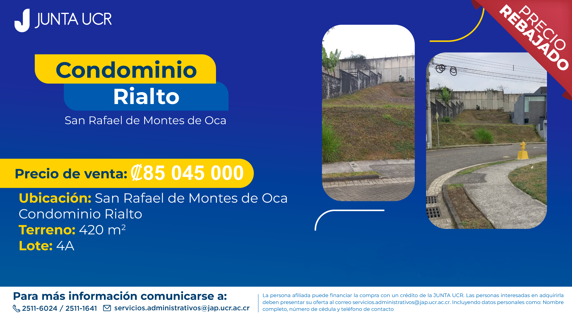Lote ubicado en Condominio Rialto, San Rafael de Montes de Oca. Lote 4A